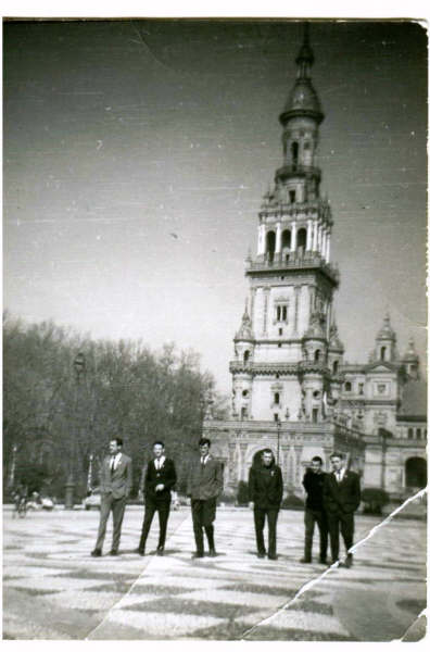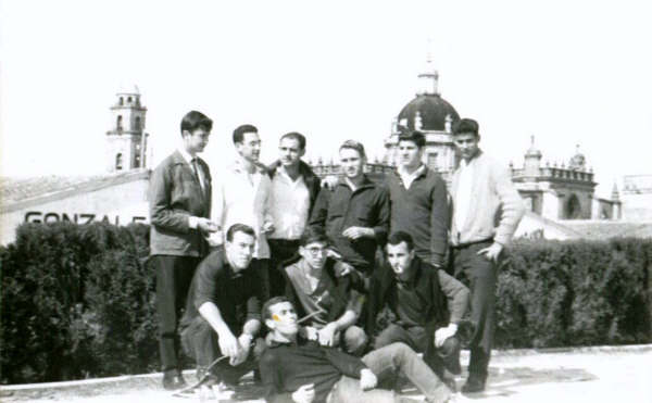 Los compañeros de la primera habitación: Herreros, Allende, Herrero, Rafa Gutierrez Díaz, González Lillo, Mariano Ibañez y yo. |