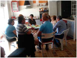 Ytem por cuanto que acabadas las visitas oficiales se dispuso la salida hacia la fortaleza menor del maestre situada en la sierra, al mediodía de la villa, una vez en ella todos los caballeros ayudados por sus uxores se afanaron en la preparación de un suculento y abundante banquete regado por afamados vinos y “zurra” manchego, acompañando desde los diferentes y extraordinarios los entrantes aportados comensales y otros preparados a la brasa hasta los suculentos postres pasando por la gran paella que deleitaron la reunión, después y entre las conversaciones y los cánticos clásicos se decidió confirmar a la Villa de los Molinos como lugar de la reunión de otoño sumándose así a la propuesta del Maestre Mayor de los territorios de Norte, D. Ioseba Marco para celebrarla en los días 3, 4 y 5 de octubre próximos; esta reunión “Menor” conviene irla pensando y confirmando con prontitud para hacer las reservas oportunas ya que la capacidad de acomodo es limitada en la villa molinera.