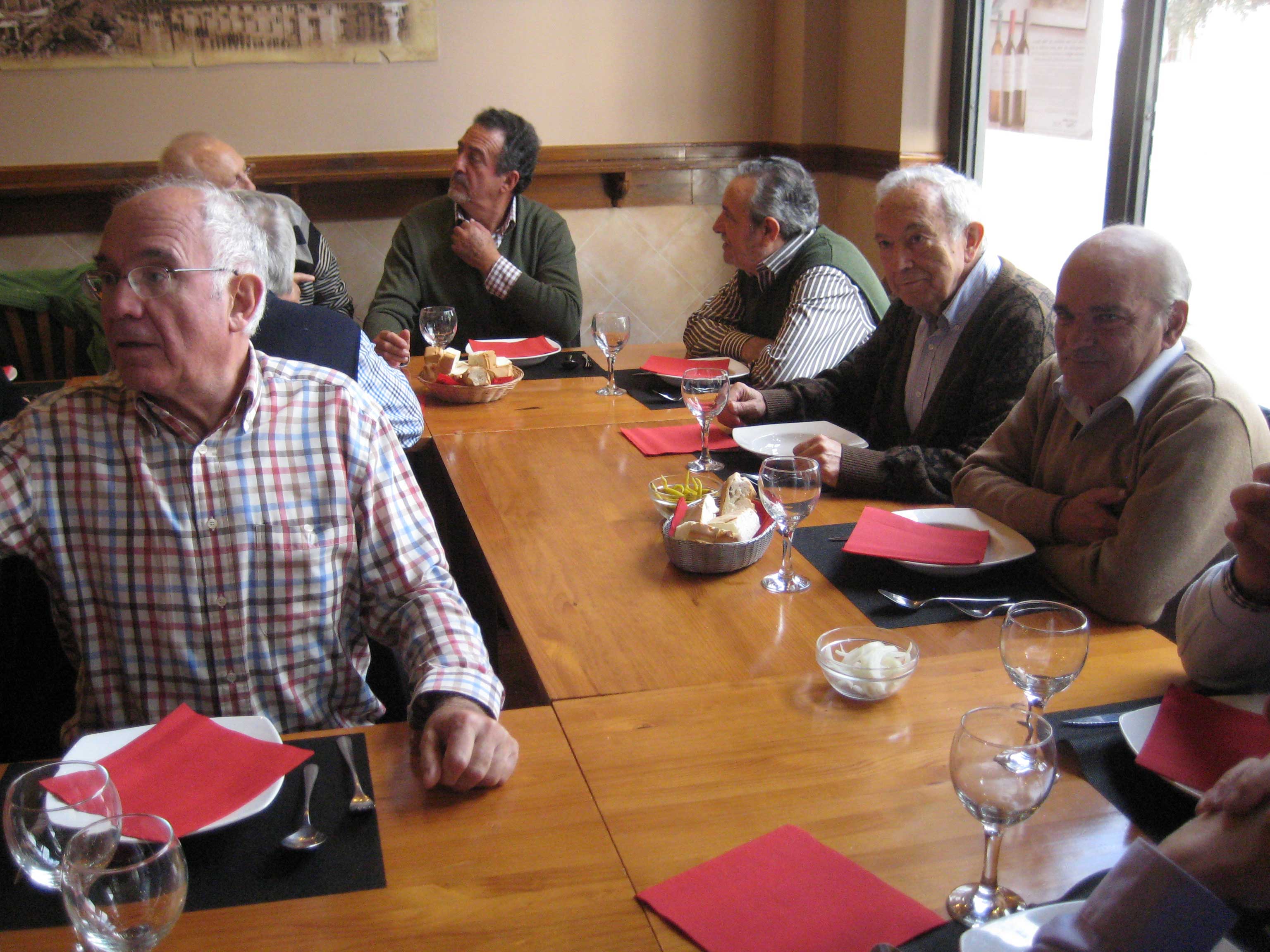Comenzamos la reunión siendo las 12,45 h., y lamentando la ausencia en la misma de compañeros asiduos, como Pepe Duque (Recuperándose de una grave operación quirúrgica) y Eduardo Cariñana (Que avisó la noche anterior, igualmente por un problema de salud), la otra ausencia también por motivos de salud y que era una novedad es la de Ricardo Menor y su esposa que habían proyectado su asistencia desde Gerona. A todos les esperamos para la próxima reunión que celebraremos el día 11 de Diciembre.